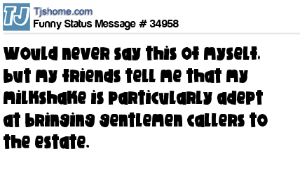 X would never say this of myself, but my friends tell me that my milkshake is particularly adept at bringing gentlemen callers to the estate.