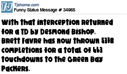 - # 31914 I knew Brett Favre was in for a long year when he threw that interception in the Wrangler commercial.