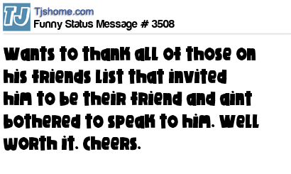 X wants to thank all of those on his friends list that invited him to be their friend and aint bothered to speak to him. Well worth it. Cheers.