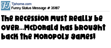 X says the recession must really be over...McDonald has brought back the Monopoly games!