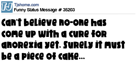 X  can't believe no-one has come up with a cure for anorexia yet. Surely it must be a piece of cake...