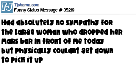 X  had absolutely no sympathy for the large woman who dropped her mars bar in front of me today but physically couldnt get down to pick it up