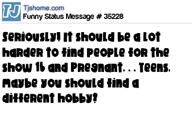 X is Seriously! It should be a lot harder to find people for the show 16 and Pregnant. . . Teens, maybe you should find a different hobby?
