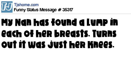X My Nan has found a lump in each of her breasts. Turns out it was just her knees.