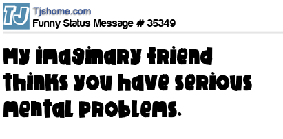 - # 3726 Sometimes I wonder what became of the imaginary friend I had as a kid... Did he go to imaginary college? Is he married to an imaginary woman or have imaginary kids? I should google his punk ass...
