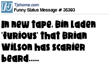 X In new tape, Bin Laden 'furious' that Brian Wilson has scarier beard.....