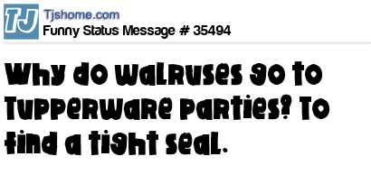 X Why do walruses go to Tupperware parties? To find a tight seal.