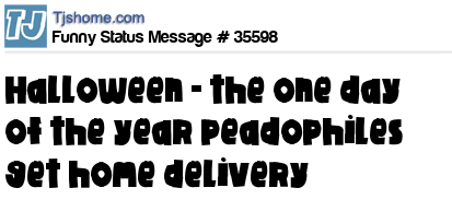 - # 77608 Halloween: The one day of the year where paedophiles get home delivery.