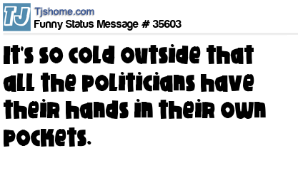 X says it's so cold outside that all the politicians have their hands in their own pockets.