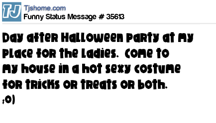 X Day after Halloween party at my place for the ladies. Come to my house in a hot sexy costume for tricks or treats or both. ;0)