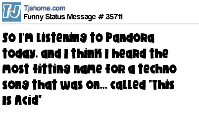 X is So I'm listening to Pandora today, and I think I heard the most fitting name for a techno song that was on... called "This Is Acid"