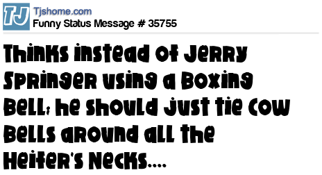 X says thinks instead of Jerry Springer using a Boxing Bell; he should just tie Cow Bells around all the Heifer's Necks....