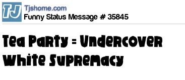 I wouldn't worry Tea Party 2012, that sort of status update is common for people who have nothing better or intelligent to say other than call others racists. It's pretty sad.
