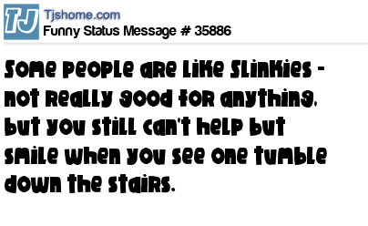 - # 48435 Some people are like Slinkies ... not really good for anything, but you can't help smiling when you see one tumble down the stairs."