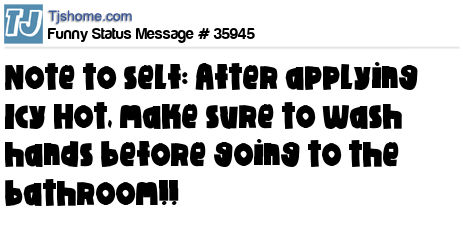 X Note to self: After applying Icy Hot, make sure to wash hands before going to the bathroom!!
