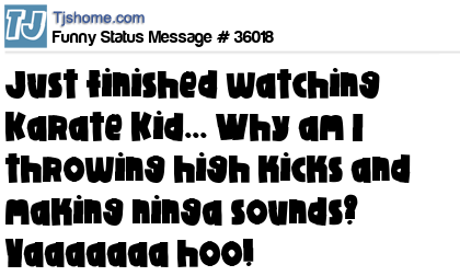 X Just finished watching Karate Kid... Why am I throwing high kicks and making ninga sounds? Yaaaaaaa hoo!