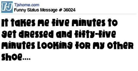 X is it takes me five minutes to get dressed and fifty-five minutes looking for my other shoe....