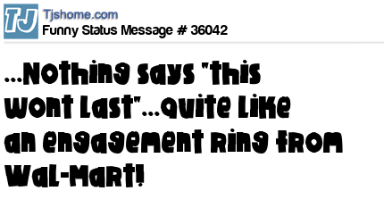 - # 32046 Nothing says "this wont last"...quite like an engagement ring from Wal-Mart !*