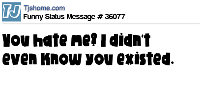 - # 150578 So you hate me? I had no idea you existed. I guess we're even.