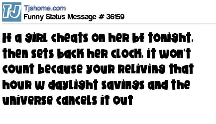 X says if a girl cheats on her bf tonight, then sets back her clock, it won't count because your reliving that hour w daylight savings and the universe cancels it out
