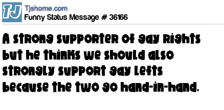 X is a strong supporter of gay rights but he thinks we should also strongly support gay lefts because the two go hand-in-hand.
