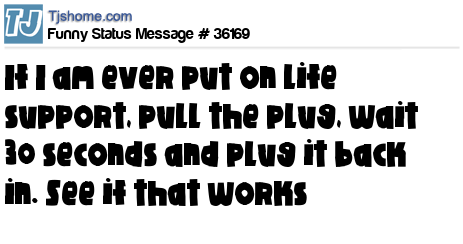 - # 46470 If I'm ever on life support, pull the plug and plug it back in. See if that works.