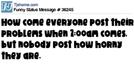 X is How come everyone post their problems when 2:00am comes, but nobody post how horny they are.