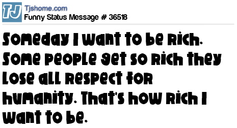 X says Someday I want to be rich. Some people get so rich they lose all respect for humanity. That's how rich I want to be.