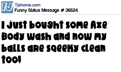 X is I just bought some Axe Body wash and now my balls are sqeeky clean too!