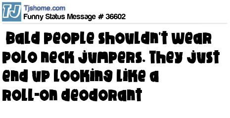 X says Bald people shouldn't wear polo neck jumpers. They just end up looking like a roll-on deodorant