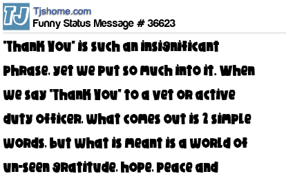 X "Thank You" is such an insignificant phrase, yet we put so much into it. When we say "Thank You" to a vet or active duty officer, what comes out is 2 simple words, but what is meant is a world of un-seen gratitude, hope, peace and safety. No, "Thank You"