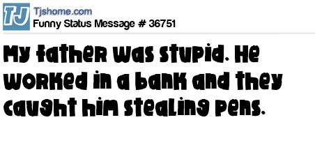 X My father was stupid. He worked in a bank and they caught him stealing pens.