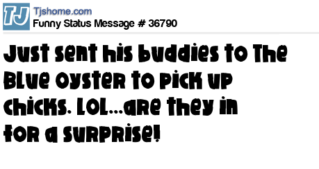 X Just sent his buddies to The Blue Oyster to pick up chicks. LOL...are they in for a surprise!