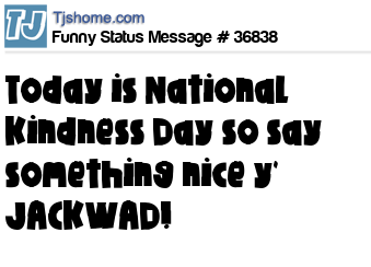 X says today is National Kindness Day so say something nice y' JACKWAD!