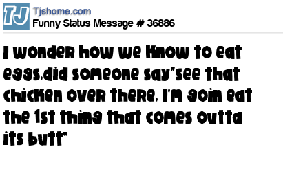 X is I wonder how we know to eat eggs,did someone say"see that chicken over there, I'm goin eat the 1st thing that comes outta its butt"