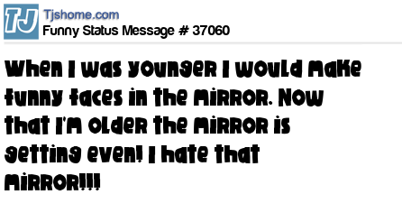 X says When I was younger I would make funny faces in the mirror. Now that I'm older the mirror is getting even! I hate that mirror!!!