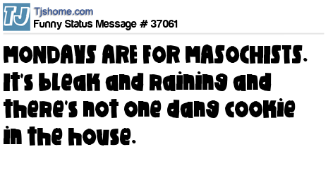 X is MONDAYS ARE FOR MASOCHISTS. It's bleak and raining and there's not one dang cookie in the house.
