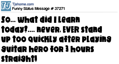 X So... what did I learn today?.... never, EVER stand up too quickly after playing guitar hero for 3 hours straight!