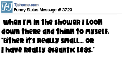 X is when I'm in the shower I look down there and think to myself, "Either it's really small... or I have really gigantic legs."