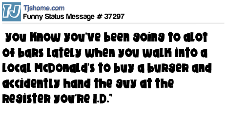 X you know you've been going to alot of bars lately when you walk into a local McDonald's to buy a burger and accidently hand the guy at the register you're I.D."