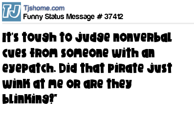 X is It's tough to judge nonverbal cues from someone with an eyepatch. Did that pirate just wink at me or are they blinking?"
