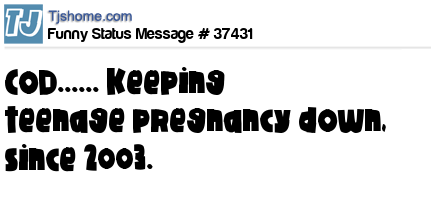 X CoD...... Keeping teenage pregnancy down, since 2003.\