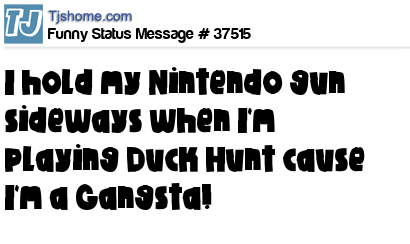 X I hold my Nintendo gun sideways when I'm playing Duck Hunt cause I'm a Gangsta!