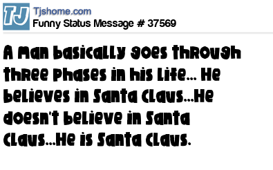 - # 108244 There are three stages of a man's life: He believes in Santa Claus, he doesn't believe in Santa Claus, he is Santa Claus.