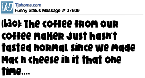 X is (630): The coffee from our coffee maker just hasn't tasted normal since we made Mac n cheese in it that one time....