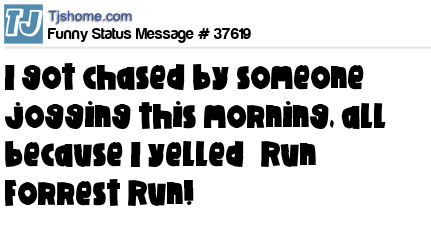 X says I got chased by someone jogging this morning, all because I yelled “Run Forrest Run!”