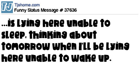 X  ...is lying here unable to sleep, thinking about tomorrow when I'll be lying here unable to wake up.