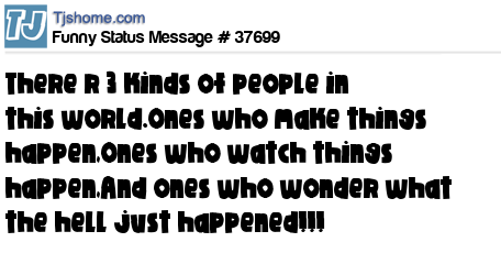 X There r 3 kinds of people in this world.Ones who make things happen,Ones who watch things happen,And ones who wonder what the hell just happened!!!