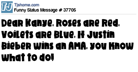 X Dear Kanye, Roses are Red, Voilets are Blue, If Justin Bieber wins an AMA, you know what to do!