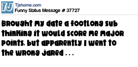 X brought my date a footlong sub thinking it would score me major points, but apparently I went to the wrong jared . . .